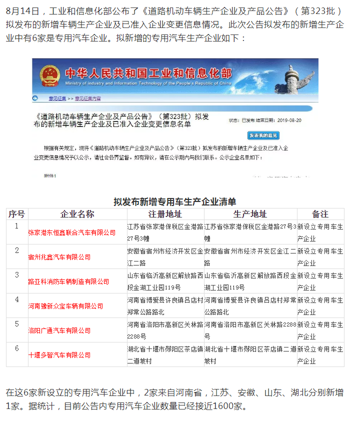 第323批公告擬發(fā)布新增6家專用汽車生產(chǎn)企業(yè)